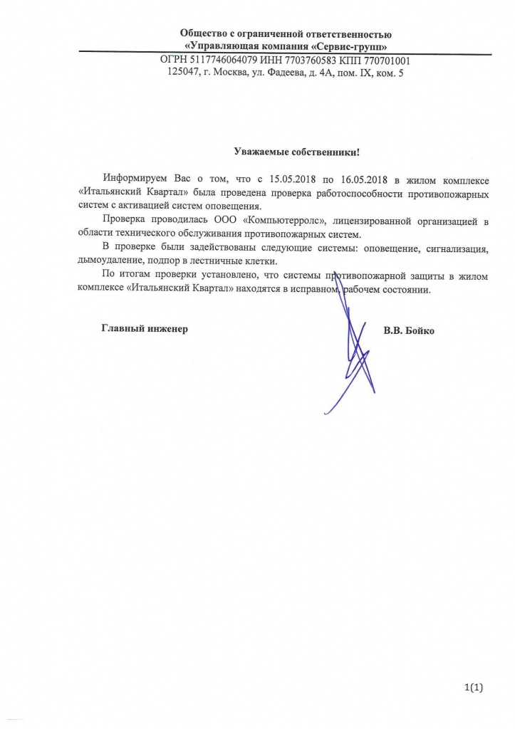 Об итогах проверки работоспособности противопожарных систем