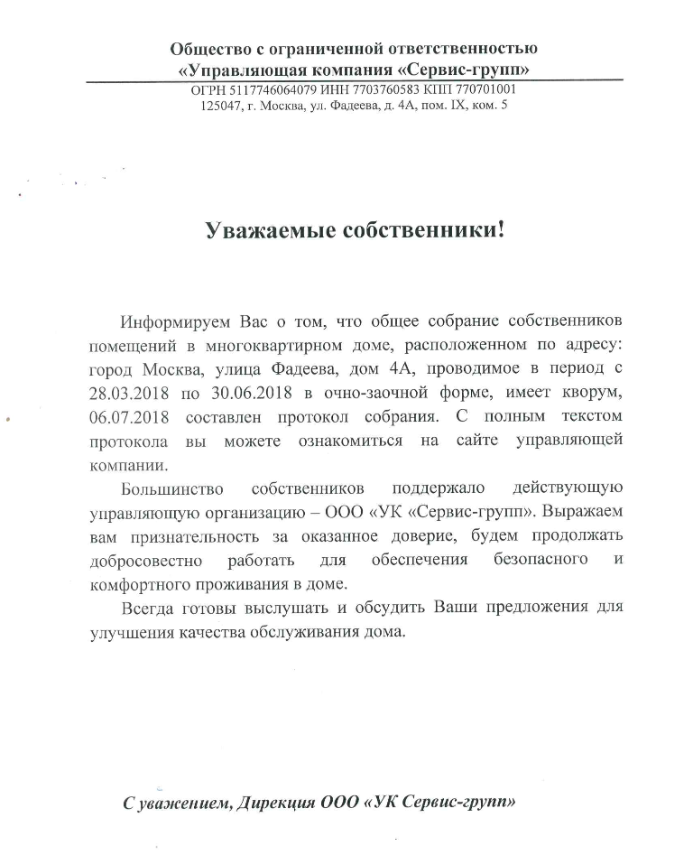 Результаты проведения общего собрания собственников ЖК "Итальянский квартал"